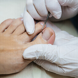 Обработка стоп и ногтей, поражённых микозом. Работа с деформированными ногтями (скрученные, утолщенные). Обработка гиперкератоза, трещин, стержневых мозолей, омозолелостей на плюсне и пальчиках. Установка тампонады. Снятие болевых синдоромов при врастающем и вросшем ногте. Разгрузочные элементы (при необходимости). Эклюзионная повязка с заживляющими препаратами (при необходимости)
